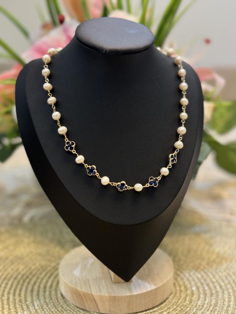 سلسال بحبات الورد واللؤلؤ اللون الكحلي