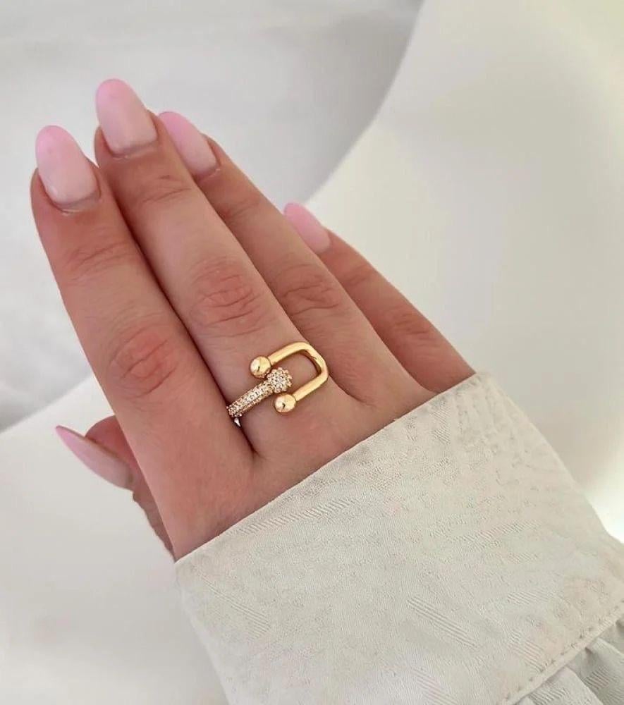 خاتم بتصميم مستوحى من تيفاني مطلي ذهب (القياس مرن قابل للتحكم).