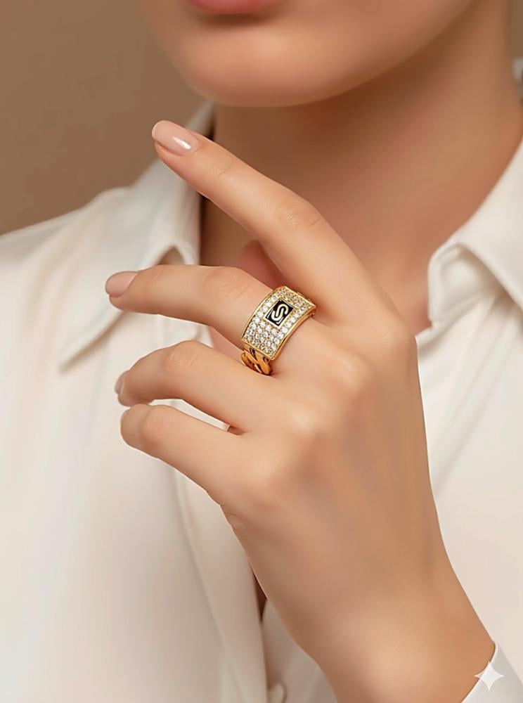 • خاتم مطلي ذهب بتصميم فاخر مستوحى من ماركة موناكو.