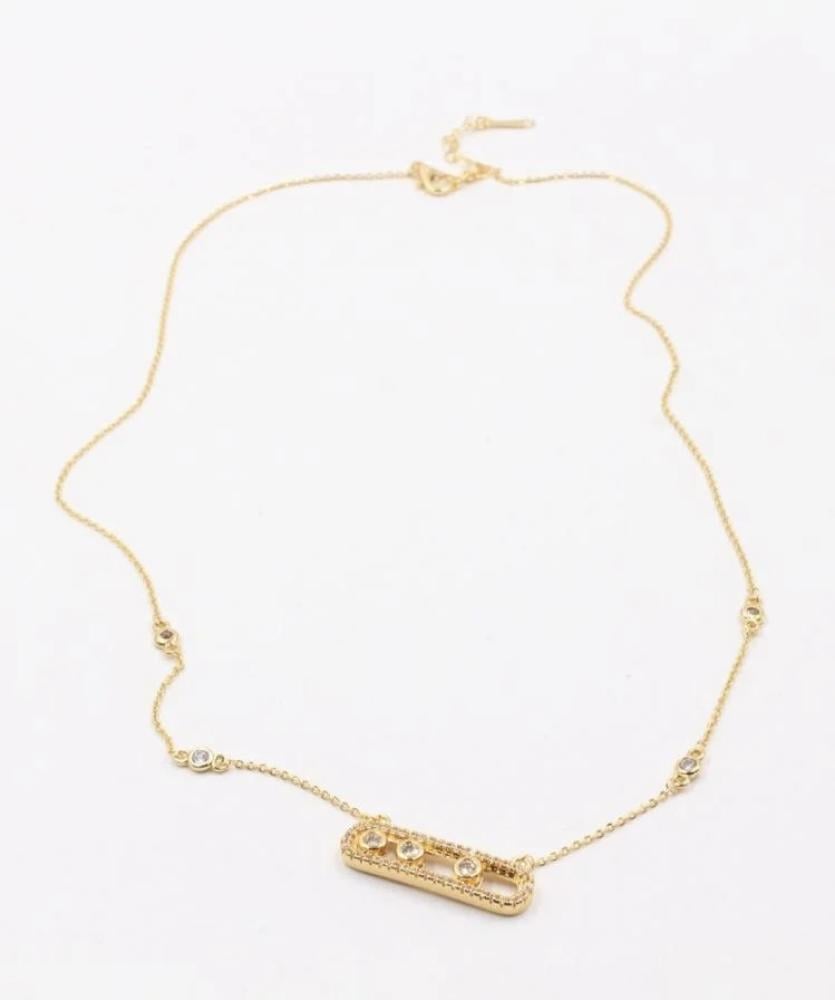 يأتي السلسال بلمعة ذهبية ناعمة مع سلسلة رفيعة مرصعة بأحجار زركون لامعة موزعة على الجانبين، تضيف لمسة ناعمة تخطف الأنظار.