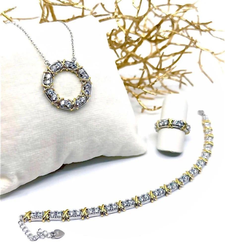 - كما أن التناغم بين الذهب الأصفر والفضة في طقم تيفاني موديل xo يعطي الطقم إشراقة ولمعان لافتين.