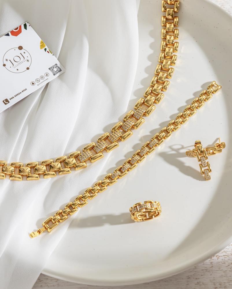 • المكونات: عقد جذاب، سوار متناسق، أقراط أنيقة، وخاتم راقٍ