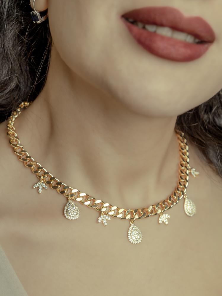 سلسال فرفشه مطلية ذهب بجودة عالية مزين بعدد من التعليقات