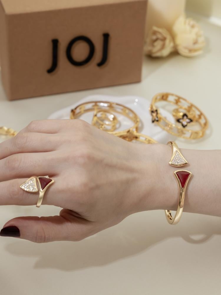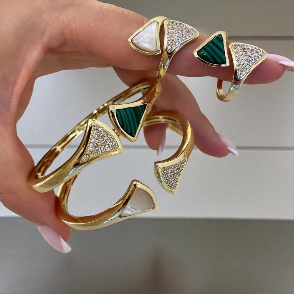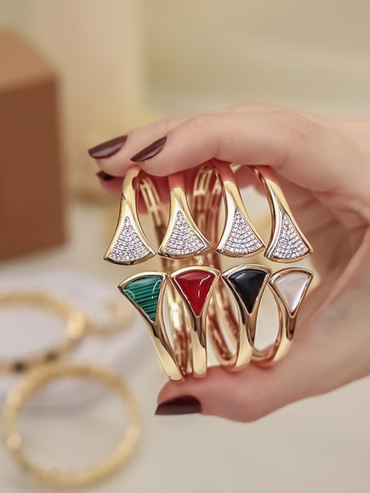 أساور مطلية بالذهب الفاخر بتصميم عصري أنيق مرصعة بفصوص لامعة تضيف لمسة فخامة لكل إطلالة.
