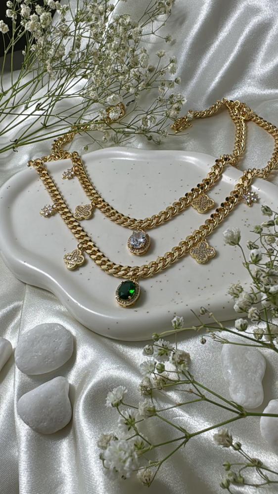 شكلك مميز بارتداء طقم الفرفشه المطلي بالذهب بجودة عالية عيار 18 والمزين بأجمل انواع الزريكون والحجر الملون والمعروف بفخامته ودقة تصميمه.