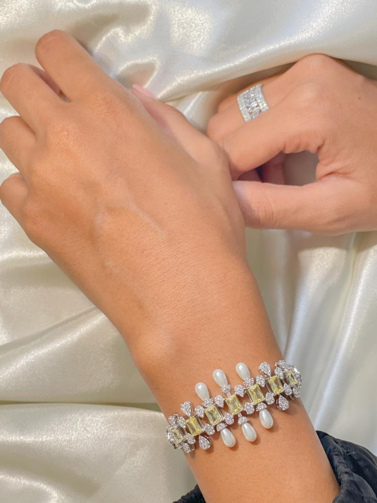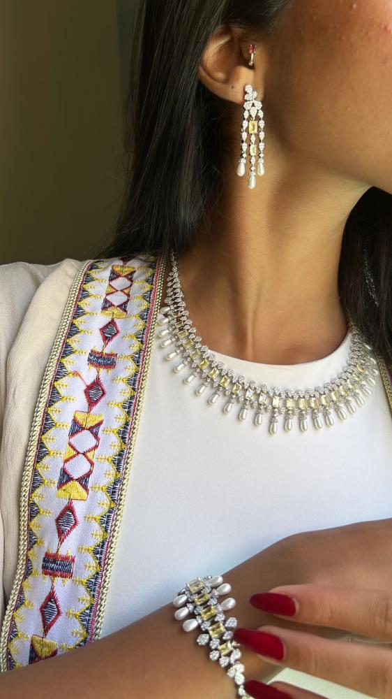 - طقم زيركون صُنع الطقم من مواد عالية الجودة ومتينة تضمن لك متانة ولمعان يدوم طويلاً.